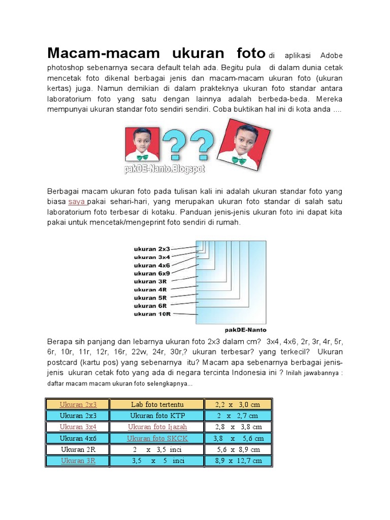 Semisal ukuran yang sering dipakai adalah foto 3×4 hampir semua orang sudah tahu ukuran tersebut. Berdasarkan jenis kertas tipe r yang sering digunakan. Ukuran foto 4×6, ukuran foto 2×3. Pernah enggak sih kalian cetak pas foto ? Sebaiknya jika kalian ingin cetak foto maka kalian harus mengetahui ukuran foto yang akan dicetak terlebih dahulu.
